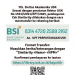 Yth, civitas akademika USK, berikut kami sampaikan informasi tentang tata cara pembayaran biaya cek similarity...
