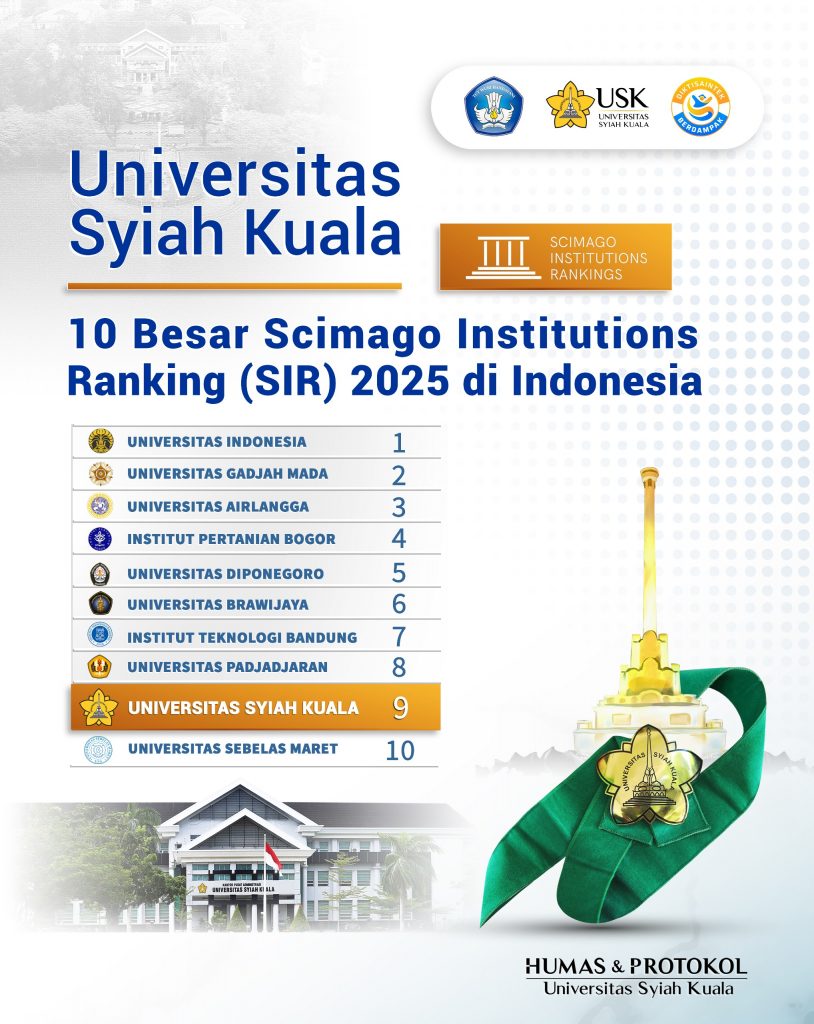 Jakarta – SCImago Institutions Rankings (SIR) 2025 telah dirilis. Pemeringkatan ini mencakup lembaga akademik dan lembaga terkait penelitian. Dalam rilis terbaru ini Universitas Syiah Kuala Banda Aceh menempati peringkat ke-9 dari 10 universitas di Indonesia versi Scimago ini.SIR diukur dari Read More …