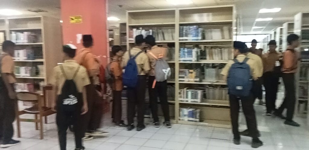 Selama di perpustakaan para guru dan siswa melihat-lihat ruang baca serta buku-buku yang tersedia. Para siswa ini juga melakukan praktik pencarian buku melalui OPAC lalu melakukan pencarian buku ke rak.