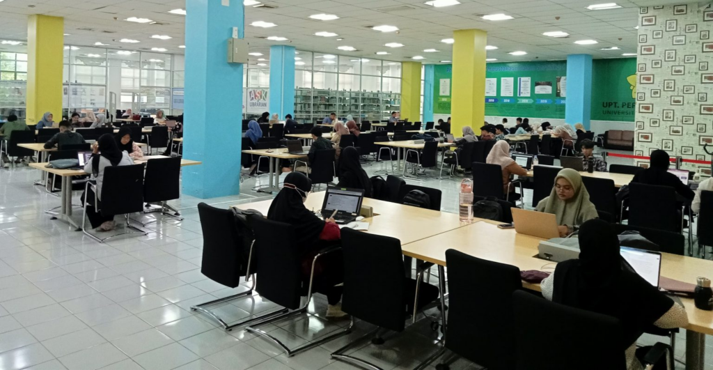 Sejak pukul 08.00 WIB, mahasiswa dari berbagai fakultas mulai memadati area perpustakaan untuk membaca, meminjam buku, atau mengakses berbagai fasilitas digital yang tersedia. Kegiatan ini menjadi rutinitas awal perkuliahan, terutama bagi mahasiswa baru yang tengah beradaptasi dengan lingkungan akademik kampus.