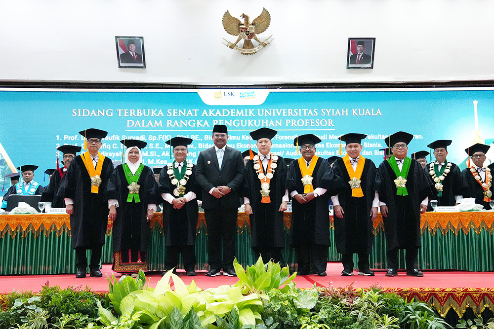 Kelima profesor baru tersebut adalah Prof. Dr. dr. Taufik Suryadi, Sp.F(K)., Dipl.BE.; Prof. Dr. Taufiq C. Dawood, S.E., M.Ec.Dev; Prof. Dr. Nadirsyah, S.E., M.Si, Ak.; Prof. Dr. dr. Zinatul Hayati, M.Kes,Sp.MK.(K); Prof. Mirza Tabrani, S.E., MBA., DBA.