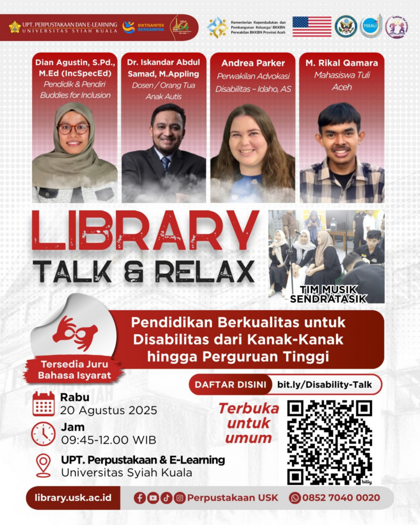 MerdekaBelajarUntukSemua #PendidikanUntukDisabilitas #LibraryTalkAndRelax #PerpustakaanUSK #BuddiesForInclusion #YSEALIPFP #Disabilitas #USK #Aceh2025 #Indonesia80TahunMerdeka