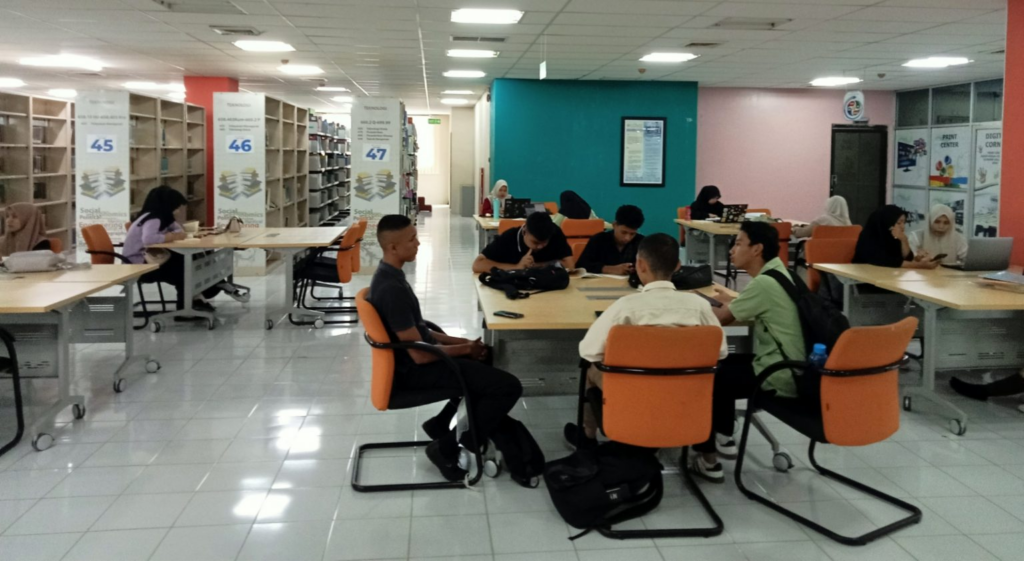 Lorong-lorong rak buku kembali hidup. Suara riuh mahasiswa terdengar bersahutan di antara rak-rak koleksi. Di sudut ruang baca, beberapa mahasiswa tampak asik membaca, sebagian lagi ada yang mencatat, menandakan bahwa perpustakaan bukan sekadar ruang sunyi, tetapi kembali menjadi pusat aktivitas intelektual.