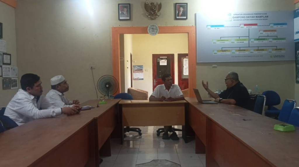 Kegiatan ini dimulai dengan tahap kunjungan ke desa dayah Mamplam pada tanggal 6 Oktober 2025 atas dasar surat permintaan dari keuchik gampong tersebut. Pada kunjungan ini tim usk yang terdiri dari Kepala UPT Perpustakaan dan E-Learning, Dr. Ismul Huda, M.Si, Baihaqi, S.IP, pustakawan usk dan Prof. M.Ali. S., M.Si yang sekaligus Tokoh Masyarakat Leupung serta Yaumil Istiqlal, M.Pd anggota tim.