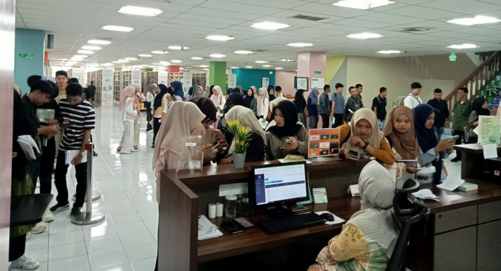 Banda Aceh, 19 September 2025 – Sampai dengan hari terakhir pelaksanaan kegiatan LOCT (LIbrary Orientation Class and Tour) untuk mahasiswa baru angkatan 2025/2026 jumlah peserta yang mengikuti kegiatan ini mencapai 6352 mahasiswa dari berbagai fakultas. Library and Orientation Class and Tour (LOCT) merupakan bagian dari rangkaian orientasi bagi mahasiswa baru Tahun Akademik 2025/2026. Kegiatan ini dilaksanakan secara masif di lingkungan Perpustakaan dan E-Learning USK dengan jumlah peserta mencapai 6.352 mahasiswa baru yang telah bergabubg dalam grup telegram LOCT GASAL 2025.