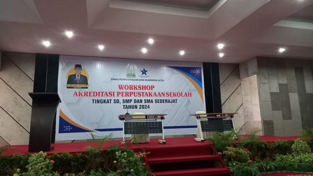 Workshop Akreditasi Perpustakaan Sekolah Tingkat SD, SM dan SMA tahun 2024 ini, di buka oleh Kepala Dinas Perpustakaan dan Kearsipan Aceh Bapak Dr.Edi Yandra, S.STP, MSP yang ikut dihadiri sejumlah Pejabat Struktural dan Fungsional dilingkungan DPKA serta para undangan.