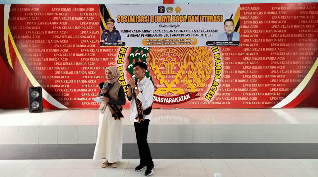 Banda Aceh – Unit Pelaksana Teknis (UPT) Perpustakaan dan eLearning Universitas Syiah Kuala (USK) menggelar kegiatan sosialisasi budaya baca dan literasi untuk anak-anak binaan di Lembaga Pembinaan Khusus Anak (LPKA) Banda Aceh. Kamis, 14 November 2024, di ruang pertemuan LPKA setempat. Kegiatan yang bertujuan untuk meningkatkan minat baca dan kemampuan literasi..