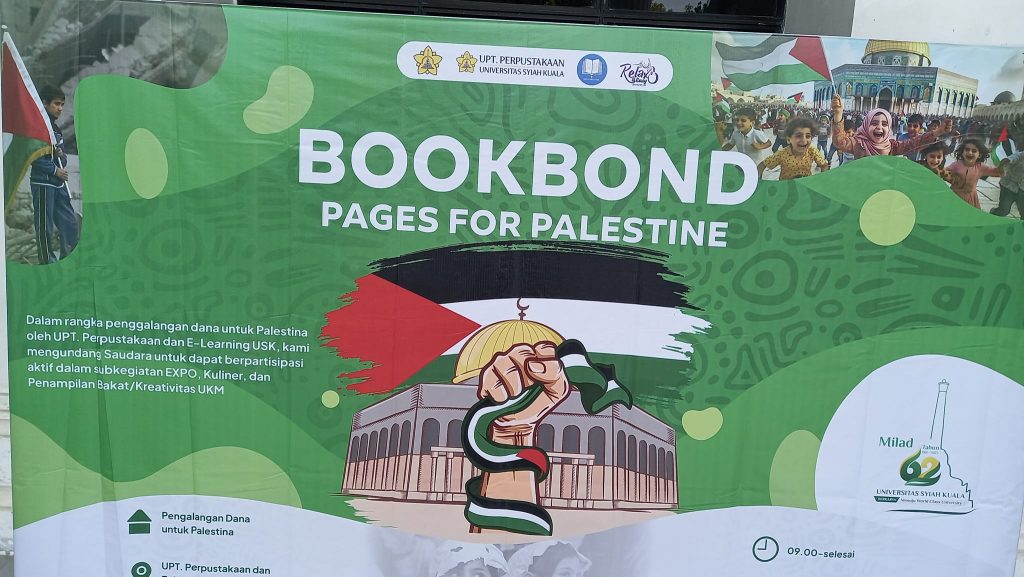 UPT Perpustakaan dan E-Learning USK mengadakan acara penggalangan dana kemanusiaan untuk rakyat palestina. Acara yang bertajuk “BookBond: Pages for Palestine!”.Kegiatan ini beralngsung selama tiga hari mulai Rabu (29/112/d1/12/2023) bertempat di gedung UPT Perpustakaan dan E-Learning USK.