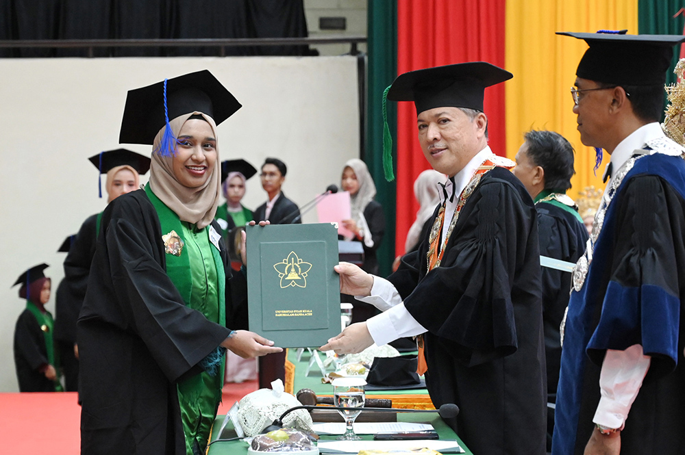 Universitas Syiah Kuala kembali meluluskan wisudawan tanpa skripsi pada prosesi wisuda periode Agustus – Oktober 2024 yang dilaksanakan selama tiga hari yaitu sejak tanggal 20 -22 November 2024 di Gedung AAC Dayan Dawood. (Banda Aceh, 22 November 2024).
