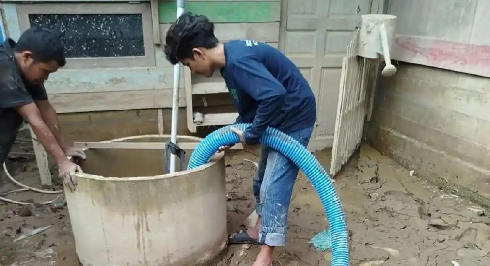 Mereka selalu berada di lapangan untuk membersihkan sumur, agar memudahkan dan mendekatkan masyarakat terdampak banjir terhadap ketersediaan air bersih.